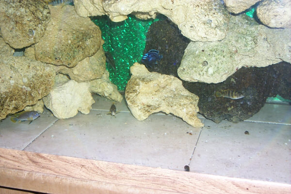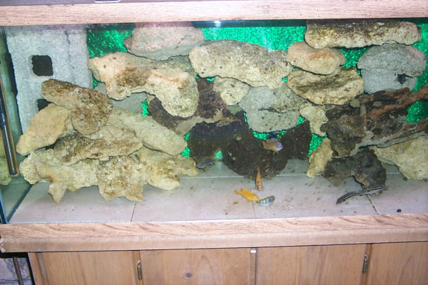And here it is after I rebuilt the reef. I'm not really sure that this will be better for the kind of fish that I am going to keep because they like rocks to hide in, but I agree that there wasn't much room to swim in the tank above. I only hope that three species of mbuna can live together in these rocks.