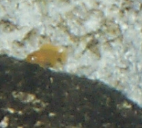 Small fry, about the size of a newborn guppy, and already yellow like it's mother.